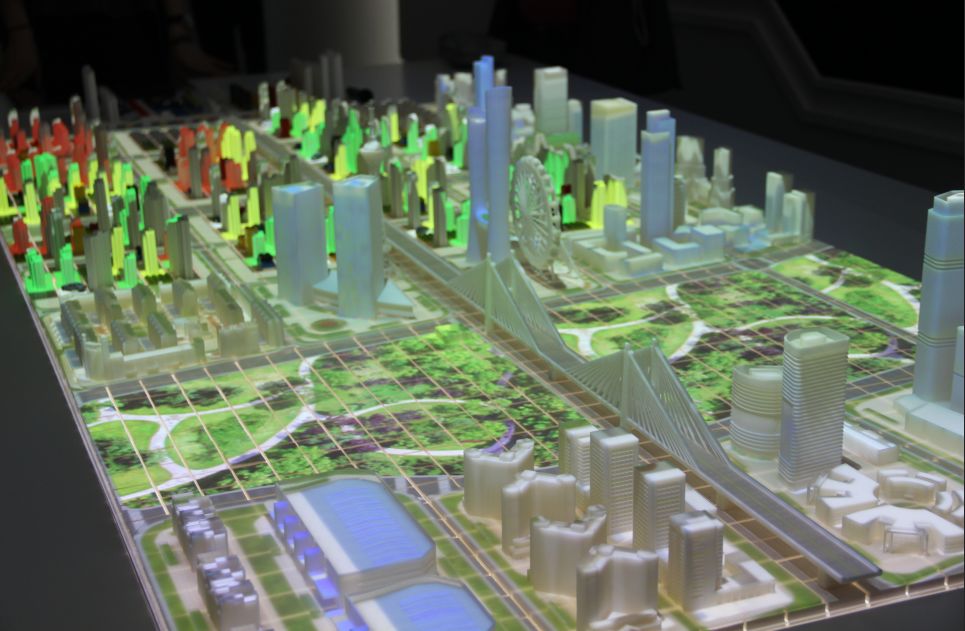 随后,刘柏呈董事长向怀进鹏详细介绍了基于BIM的数字孪生技术,此项技术可以将物理设备的各种属性映射到虚拟空间中,从而形成具备全要素的数字孪生镜像,更有利于优化设计、制造、管理和服务。基于数字孪生技术构建的管理平台通过物联网的数据采集、大数据的处理和人工智能的建模分析,可实现对当前状态的评估、对过去发生问题的诊断,以及对未来趋势的预测,并给予分析结果,且模拟各种可能性,快速直观的了解智慧化对城市环境、城市运行等状态的提升效果,评判项目的建设效益。