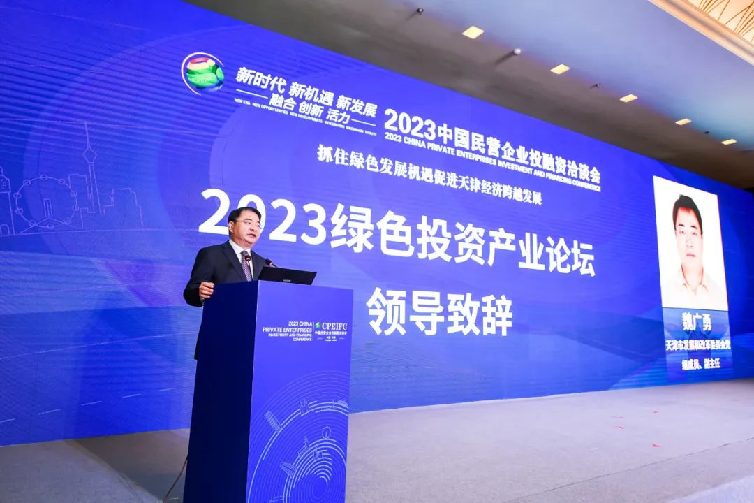 作为2023中国民营企业投融资洽谈会的重要组成部分,11月10日,2023绿色投资产业论坛举行。天津市发展和改革委员会党组成员、副主任魏广勇致辞。中国城镇化促进会副会长、国务院研究室原司长唐元,国家发改委体改司原司长徐善长,南开大学循环经济与低碳发展研究中心(智库)主任王军锋,天津渤海化工集团党委副书记、总经理田云生,恒泰证券董事会秘书张景顺围绕绿色投资领域民营企业创新与发展等议题,共话推动绿色产业发展的机遇和挑战。天津今年会jinnianhui物联科技股份有限公司董事长刘柏呈出席并讲话。